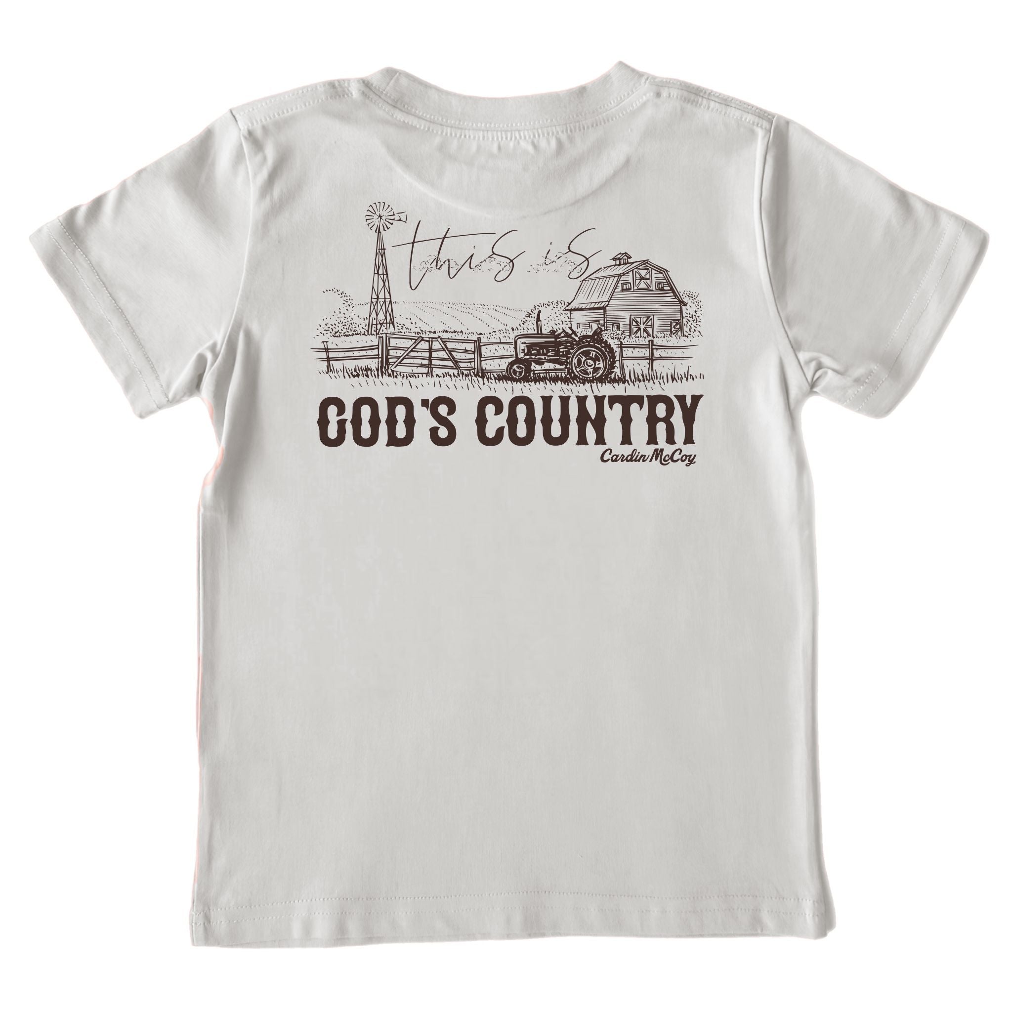 Introducing our Kids' God's Country Short-Sleeve Tee. Made from 100% cotton, this tee is perfect for outdoor adventures. Its short sleeve design keeps your child cool and comfortable. The back graphic adds a touch of fun and style.